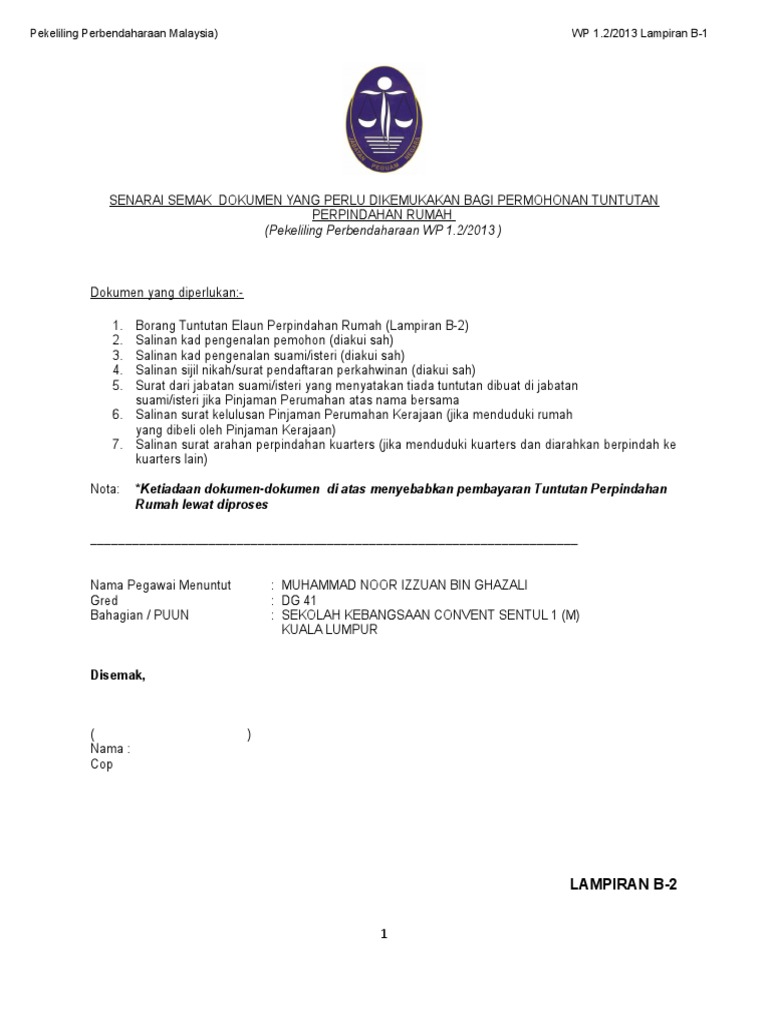 Borang Tuntutan Perpindahan Rumah Pegawai Kerajaan